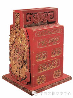 “十里红妆”展览中的展品“朱金木雕轿前担”
