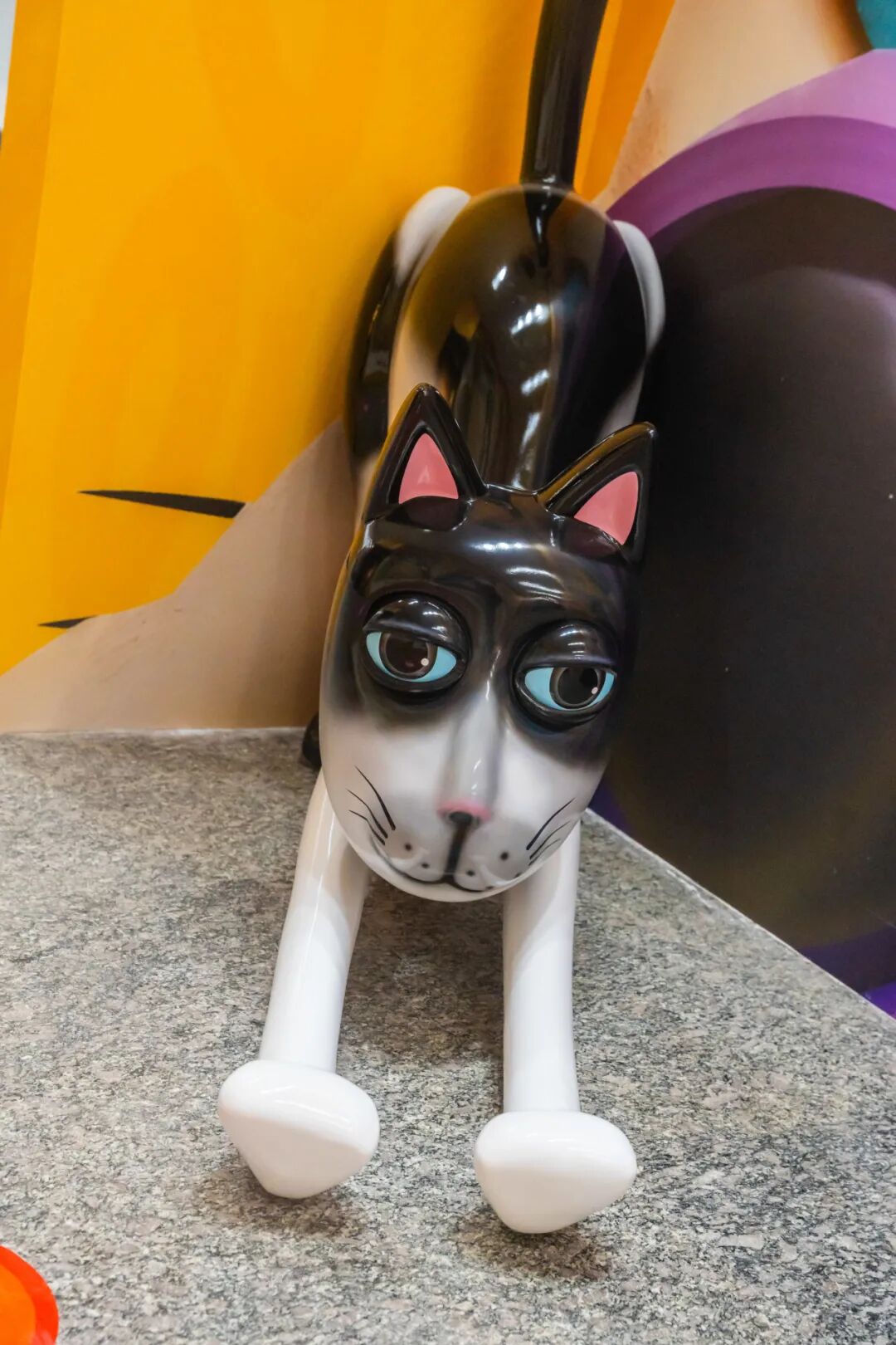 展览艺术品展示分为四个板块,分别是“辖区:第二故乡”“荣誉称号:猫咪之友”“猫咪家属”“和平共处:生活的艺术”,不仅构建了“喵星人的度假乐园”,更通过大型艺术装置以及沉浸式互动空间(万花筒)打破虚实边界,邀请观众踏入一场妙趣横生的“都市狂想”,在繁忙的生活节奏中重拾内心的宁静与童真。