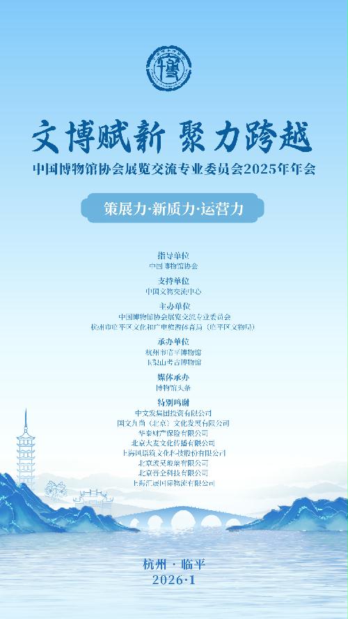 2026年1月15日,由中国博物馆协会指导,中国文物交流中心支持,中国博物馆协会展览交流专业委员会、杭州市临平区文化和广电旅游体育局(临平区文物局)主办,杭州市临平博物馆、玉架山考古博物馆承办的中国博物馆协会展览交流专业委员会2025年年会暨全体会议在杭州举办。