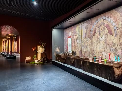 展览中,穆夏为莎拉·伯恩哈特设计的《吉斯蒙达》《茶花女》等标志性海报,展现了以流畅线条与华丽装饰定义新艺术运动的视觉语言;其在1900年巴黎万国博览会中注入的斯拉夫民族主题,以及晚年倾注巨量心血完成的巨作《斯拉夫史诗》,揭示了作品背后深厚的家国情怀与哲学思考。同时,展览通过珠宝、玻璃器皿、家具等实用艺术品,以自然为灵感,将植物曲线、象征符号融入日常器物,生动诠释新艺术运动“艺术生活化、生活艺术化”的核心理念,让美学从殿堂走入生活。
