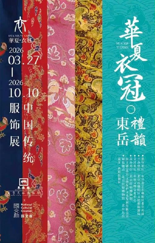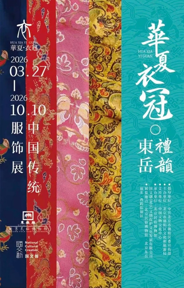 2026年3月27日,由中国文物交流中心支持、北京市朝阳区文化和旅游局主办、国文创(北京)文物保护文化发展有限公司承办的“华夏衣冠·礼韵东岳——中国传统服饰展”在北京民俗博物馆开幕。中国文物交流中心党委书记、主任谭平,北京市朝阳区人民政府党组成员、副区长吴凤武,北京市朝阳区文化和旅游局党委书记、局长郭勋,北京市朝阳区朝外街道办事处主任黄海燕以及著名服饰史学者陈诗宇等领导嘉宾出席开幕式。北京民俗博物馆馆长申健主持开幕式。